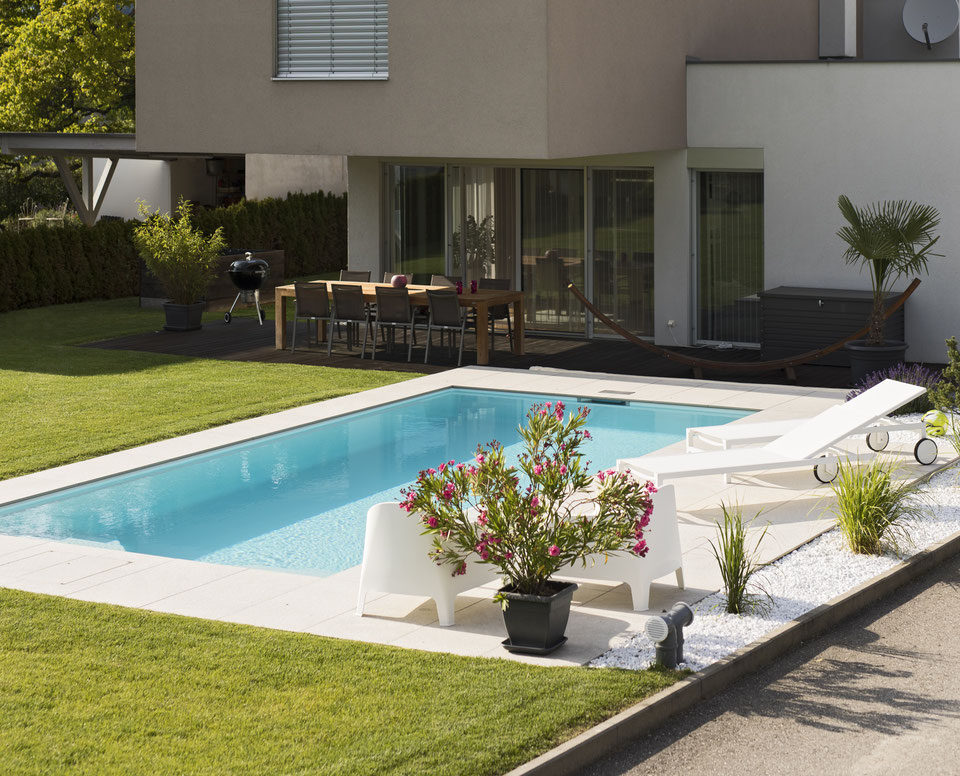 Ihr Wunschpool wird inklusiv Baumeisterarbeiten, Steinverlegung sowie Gartengestaltung konfiguriert. Endgültige Modellauswahl, Farbe, Ausstattung und Zubehör werden festgelegt und daraus der Poolpreis generiert.
