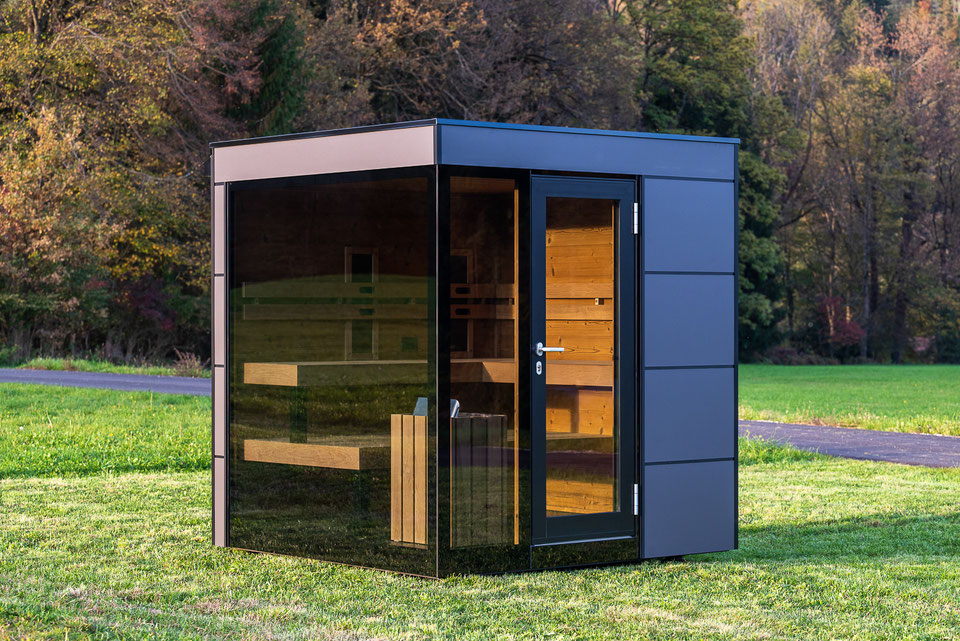 Genießen Sie die Freiheit und Frische unserer Premium – Außensauna CORTINA mit unserer exklusiven Ausstattung.
