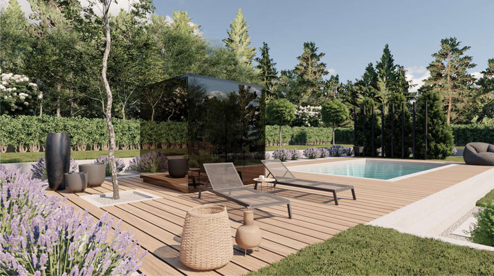Willkommen in der Welt der Exklusivität mit unserer Au0ensauna OPTIMA und ihrer anspruchsvollen Ausstattung.
